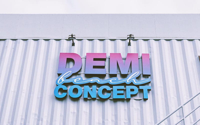 พิกัดของ Demi Beach ตั้งอยู่ในอำเภอปราณบุรี จังหวัดประจวบคีรีขันธ์ ใกล้เขากะโหลกสถานที่ท่องเที่ยวชื่อดัง เปิดให้บริการในรูปแบบของคาเฟ่ในชั้นล่างและพื้นที่ชั้นสองส่วนหนึ่ง ส่วนที่พักมีเพียงห้องเดียว ตั้งอยู่บริเวณชั้นสอง ตัวร้านและที่พักมาในรูปแบบดีไซน์ตู้คอนเทนเนอร์สีขาวสองชั้น มีบันไดขึ้นไปยังชั้นสองของห้องพัก รอบร้านประดับต้นกระบองเพชรให้โพสต์ท่าถ่ายรูปแบบเก๋ๆ
