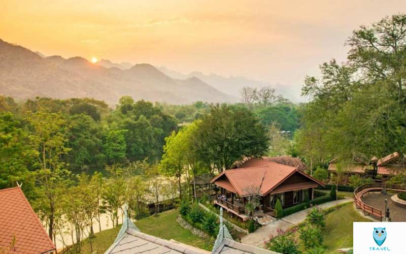 รีสอร์ตแสนสบายที่ตั้งอยู่บนพื้นที่ริมโค้งน้ำ เคียงคู่กับสะพานรถไฟสายประวัติศาสตร์ และด้วยท่ามกลางบรรยากาศธรรมชาติที่ด้านหลังติดเขา ด้านหน้าติดเวิ้งน้ำ ทำให้นักท่องเที่ยวที่เดินทางมาที่นี่จะได้รับประสบการณ์ในการสัมผัส ธรรมชาติอย่างใกล้ชิด อีกทั้งยังมีกิจกรรมให้เลือกทำหลากหลายชนิด เช่น ว่ายน้ำ ตกปลา ล่องแพ ขี่ช้าง ท่องไพร ไต่เขา เที่ยวถ้ำ และเกมแคมป์ไฟ พร้อมอิ่มอร่อยกับอาหารเลิศรสที่บริการคุณทุกมื้ออาหาร และมื้อพิเศษ ตื่นตา ตื่นใจ กับการแสดงแสง เสียง ย้อนเรื่องราวแห่งประวัติศาสตร์ของสงครามโลกครั้งที่สองอีกด้วย สำหรับที่พักของที่นี่ เป็นที่พักเล็ก ๆ ที่อิงแอบกับสายน้ำได้อย่างลงตัว
