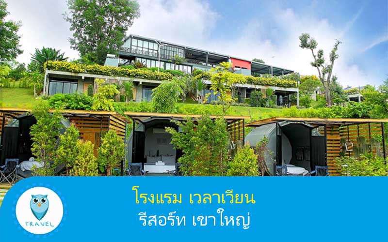 โรงแรม เวลาเวียน รีสอร์ท เขาใหญ่ วังน้ำเขียว แผ่นดินขอบที่ราบสูงอีสานด้านใต้สุด ถ้าเราเดินทางมาจากฝั่งปราจีน บนเส้นทางสายกบินทร์บุรี-ปักธงชัย หรือที่นิยมเรียกกันว่าเส้นปักฯ เส้นทางนี้จะพาเราไต่ความสูงจากพื้นราบแทรกผ่านร่องเขาสองป่า ซ้ายป่าเขาใหญ่และขวาป่าทับลาน ขึ้นมาอยู่บนที่ราบสูง เฉลี่ย 500 เมตรจากระดับน้ำทะเล ที่นี่ อากาศดี ดีซะจนได้ชื่อว่าเป็นแหล่งโอโซนชั้นดี 1 ใน 7 ของโลก แถมด้วยสมญานาม “สวิตเซอร์แลนด์แดนอีสาน” เลยต้องกลับมาสูดอากาศดีดีแถวนี้แทบทุกปี